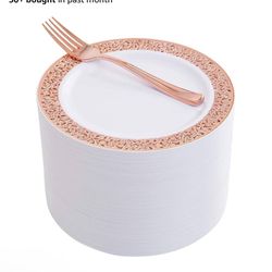 200 Pc Rose Gold Plates And Forks $15Pumpkin Center, CA