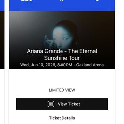 Ariana Grande Tour Tickets For Oakland Arena$450Bakersfield, CA