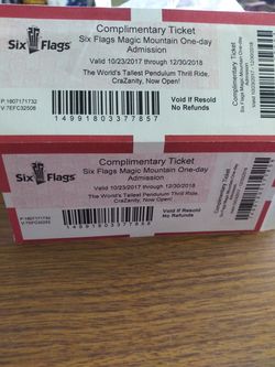 Two tickets for magic mountain expires 12/30/18 $120$120Bakersfield, CA