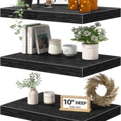 QEEIG 10" Deep Floating Shelves for Wall - 10 x 16 inch Book Shelf Bathroom Bedroom Kitchen Living Room Hanging Bookshelf Farmhouse Set of 3, Black (0$25Bakersfield, CA
