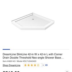 DreamLine SlimLine 42-in W x 42-in L with Corner Drain Shower Base...$200Bakersfield, CA