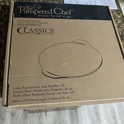 New Pampered Chef Large Round Stone w/Handles 15”$50Bakersfield, CA