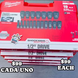 Milwaukee SHOCKWAVE 1/2 in. Drive SAE 6 Point Impact Socket Set (19-Piece)$99Bakersfield, CA