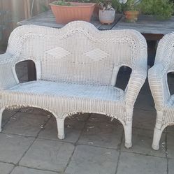 Patio Furniture 3 Piece White Wicker Sofa Chair Table$65Bakersfield, CA