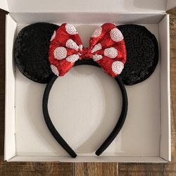 Minnie Mouse Ear Sequined Headband for Women Girls Hair, Black Ears with Sequins and Red/White Polka Dot Bow, Disney Birthday Party *NEW In Open Box*$5Pumpkin Center, CA