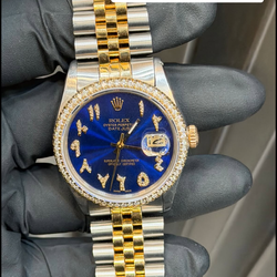 Rolex Datejust 36mm Custom Blue Arabic Dial Diamond Dial + Diamond Bezel Two-tone Jubilee bracelet Preowned Rolex box$5,500Pumpkin Center, CA
