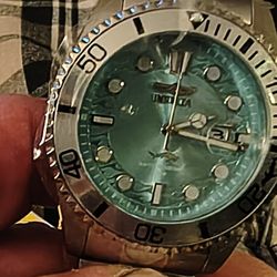 Invicta Pro Diver model 44715. This men's watch features a stainless steel case and bracelet with a distinctive light blue, sunray dial.$80Bakersfield, CA