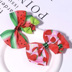2 Boutique Style Bow Clips for Girls, Watermelon & Strawberry Barrettes with Mini Bows & Alligator Hairpins, Cute Hair Accessories *NEW In Plastic*$5Pumpkin Center, CA