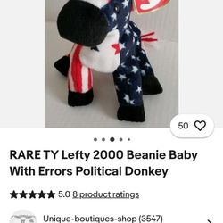 RARE TY Lefty Beanie Baby w/errors$350Pumpkin Center, CA