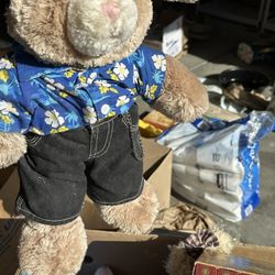 This is a Build-A-Bear Workshop stuffed rabbit wearing a blue Hawaiian shirt and black denim shorts. $15Bakersfield, CA