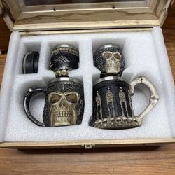 Gothic Skull Beer Stein & Goblet Gift Set Stainless Steel Lining Wooden$50Bakersfield, CA
