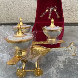 Brass Gold Polished Silver Plated Helicopter Design Set of 3 Dry Fruit$50Bakersfield, CA