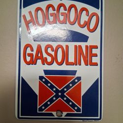 Porcelain "HOGGCO GASOLINE" CONFETERATE FLAG. 4" x 6" Sign.....asking $50.00$50Bakersfield, CA