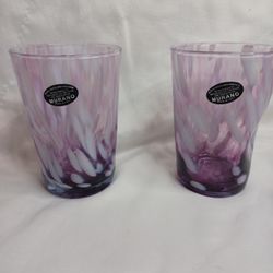 2 Vetro Eseguito MURANO Purple & White Hand Blown Tumbler Drinking Glasses NEW$30Bakersfield, CA