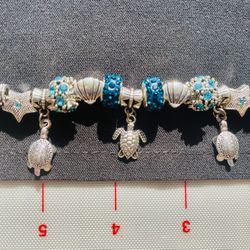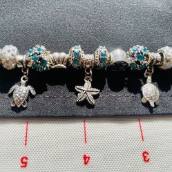 Handmade Charm Bracelet, Pandora-esque, Valentine’s Day, Ocean Turtle Theme$20Bakersfield, CA