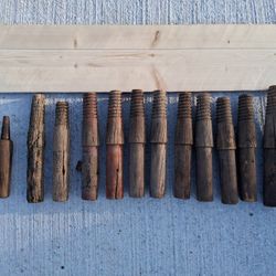 TWELVE (x12) ANTIQUE GLASS INSULATOR MOUNTS PEGS WOOD THREADED TELEPHONE / TELEGRAPH POSTS...asking $60.00$60Bakersfield, CA