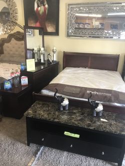 4pc Queen Bedroom Set Queen Bed Frame Dresser Mirror Nightstand$699Bakersfield, CA
