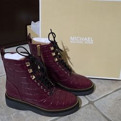 New Michael Kors Haskell Combat Boots Dark Berry Croc Leather US 6M$115Bakersfield, CA