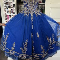 Royal Blue and Gold Quinceañera dress$450Bakersfield, CA