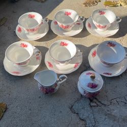 Very Beautiful China Bone Tea Set 5 Cup Plate Like New$20Pumpkin Center, CA