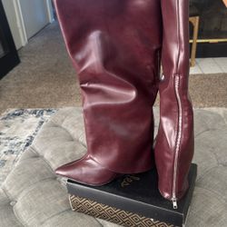 Size 8 burgundy suede lace-up over-the-knee boots$10Pumpkin Center, CA