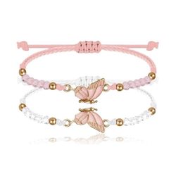 2 Piece Matching Butterfly Bracelets with Adjustable Strap/Band, Beaded Friendship Charm Bracelet, Kids/Girls Best Friend Jewelry Set, Pink/White, NEW$5Pumpkin Center, CA