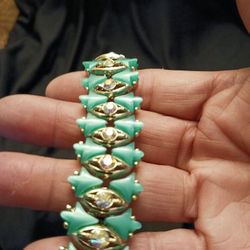 Vintage Jewelry, Lucite Bracelet, Green, AB Crystals$45Bakersfield, CA