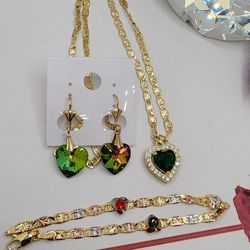 Hearts Green Set Chain Earrings Bracelet Gold-plated 18k$36Bakersfield, CA