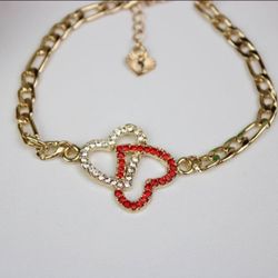 Hearts Bracelet With Clear Red Stones Gold-plated $10Bakersfield, CA