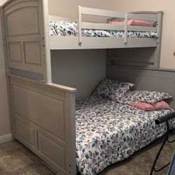 Saavy & Chic Four In One Unit, Heavy Duty, Solid, White, Wood, Bunkbed, With Desk, Dresser, Shelves, And Bed$650Bakersfield, CA