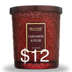 Bellevue Candle | Cardamom & Plum Luxury Scented Candle – 12 oz | Soy Blend Wax | Dual Wick | Long-Lasting Warm & Spiced Home Fragrance | Embossed Gla$12Bakersfield, CA