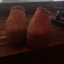 womans tan platform slip on clog mules with braied collar$45Bakersfield, CA