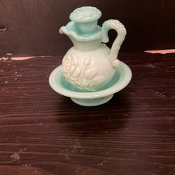 Vintage Avon 70s Victoriana Jadeite Green Milk Glass Pitcher, Stopper, and Bowl$25Bakersfield, CA