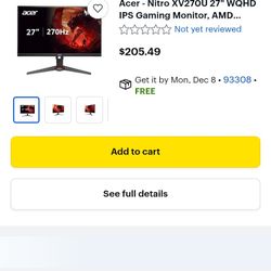 Acer 144Hz, 1080p Monitor$100Bakersfield, CA