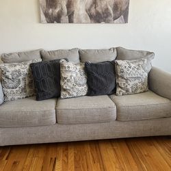 Upholstered sofa with patterned accent pillows$65Shafter, CA