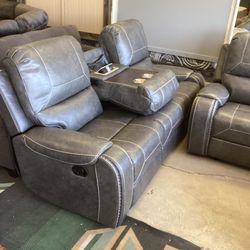New 3 Pc Sofa Recliner Color, Gray Sway Material Free Delivery ๐ฆ $1,250Delano, CA