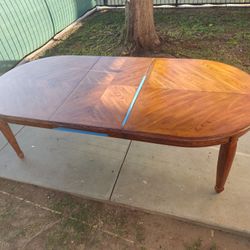 Vintage Wood Dining Table + 2 Leafs &