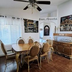 Rod Iron Decorative Table,leaf Extension,6 Chairs W/ Hutch.$600Bakersfield, CA