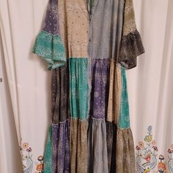 Oli & Hali Boho Maxi Length Bandana Ptchwork Lagenlook Raw Edges Button Dress XL$60Bakersfield, CA