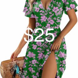 ZEAGOO Womens Summer Sundress Ruffle Short Sleeve Casual Dresses V Neck Floral Wrap A-Line Party Dress with Pockets$25Bakersfield, CA