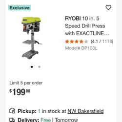 RYOBI 10” DRILL PRESS BRAND NEW EXTRA PIECES$180Bakersfield, CA