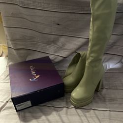 vivianly Women's Knee High Round Toe High Platform Chunky Heel Boots(size 10) Light Green$5Bakersfield, CA