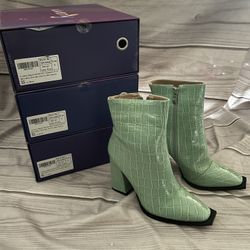 vivianly Square-Toe Mid Calf Crocodile Print Ankle Boots Thick Heel Side Zip Short Booties Size (8) Color Lake Blue$5Pumpkin Center, CA