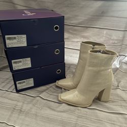 vivianly Square-Toe Mid Calf Crocodile Print Ankle Boots Thick Heel Side Zip Short Booties Size(9) Color Creamy White$5Pumpkin Center, CA