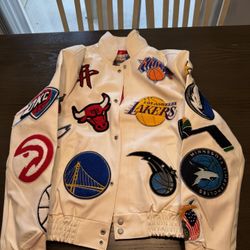 Jeff Hamilton NBA Collage Leather Jacket Size LARGE WHITE $1,200Bakersfield, CA