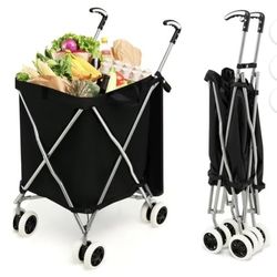 Folding Shopping Cart with Water-Resistant Removable Canvas Bag