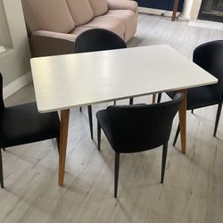 47.2" Dining Table for 4 Person - Rectangular Kitchen Table with Soild Wood Legs Mid Century Modern Table for Dinning Room, Kitchen, And 4 Black Faux $125Bakersfield, CA