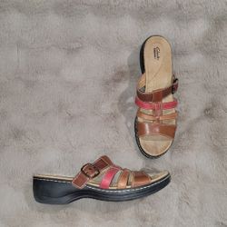 Women's Size 12 Clark's Leather Sandals Slides PRICE is Firm Cash Only $15Bakersfield, CA