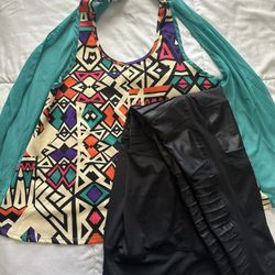 OOTD! Geoprint Backless Top w/ Leather Leggings. XL $10$10Bakersfield, CA