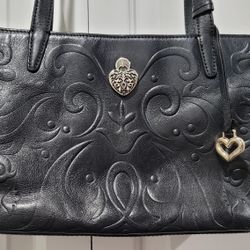 BRIGHTON CORDOBA COLL BLACK LUCIA EMBOSSED SPANISH MOTIF SHOULDER HANDBAG Excellent Condition Price Is Firm Cash Only $75Bakersfield, CA
